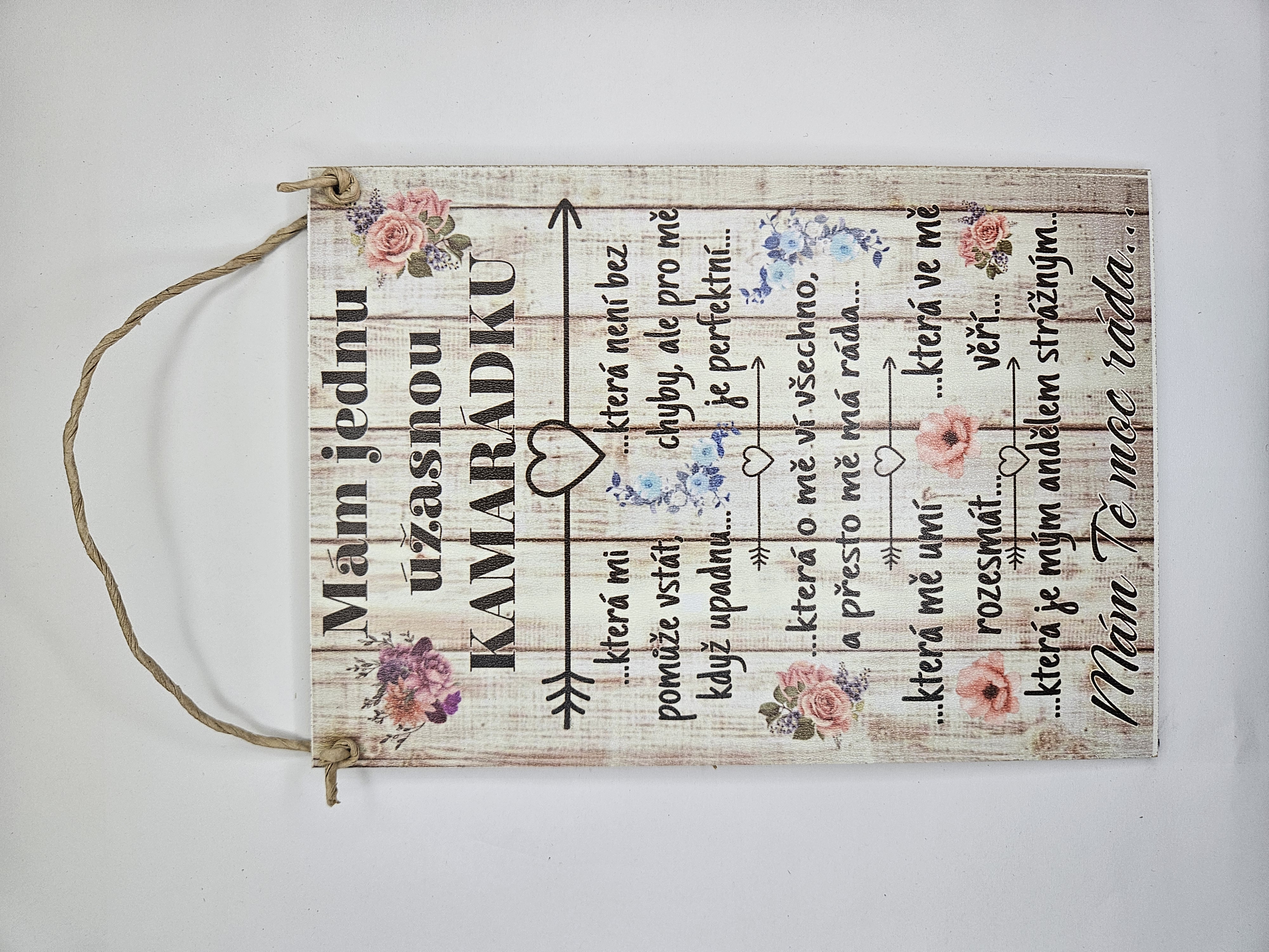 Dekorační cedule je originálním a stylovým doplňkem do vašeho interiéru. Cedule je z 3mm silné dřevovláknité desky formátu A5 (210x148mm). S provázkem na pověšení.
