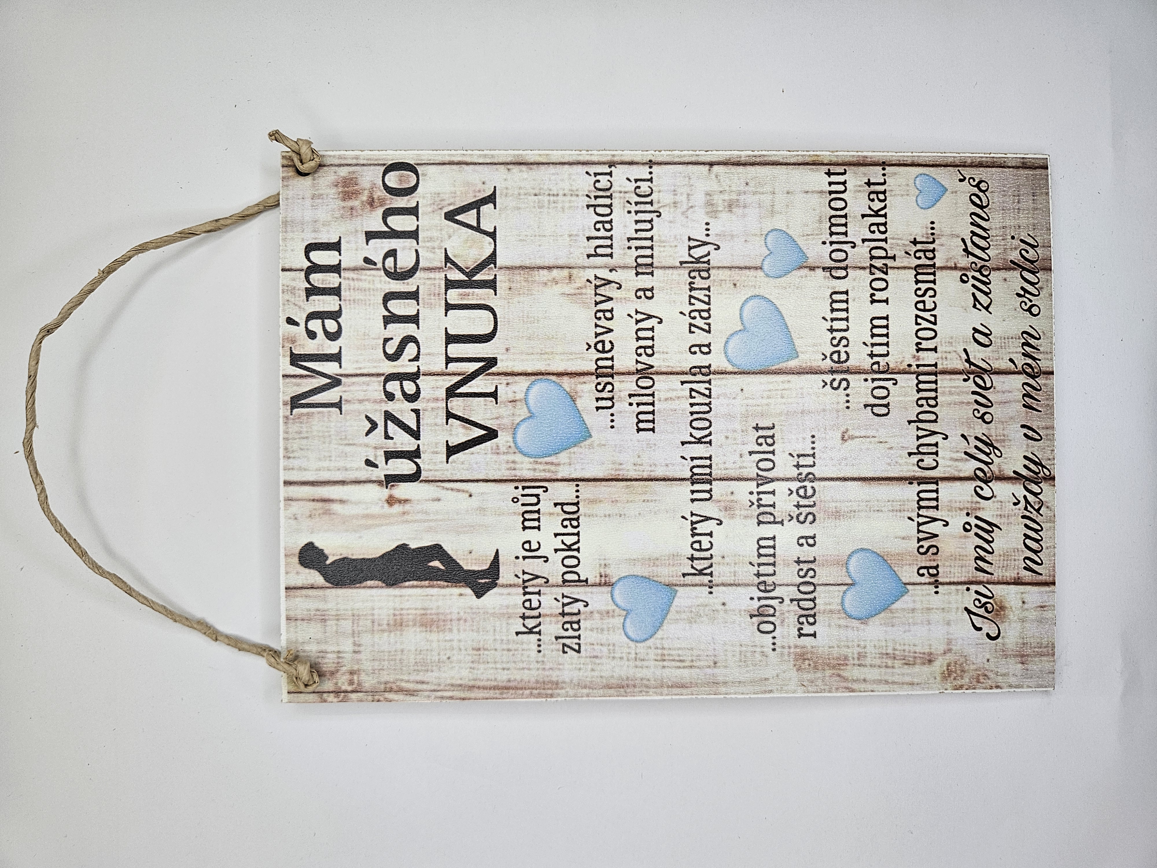 Dekorační cedule je originálním a stylovým doplňkem do vašeho interiéru. Cedule je z 3mm silné dřevovláknité desky formátu A5 (210x148mm). S provázkem na pověšení.